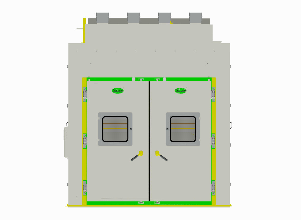 Jede Tür hat einen Griffverschluß, damit die Maschinensicherheit während des Tests hält